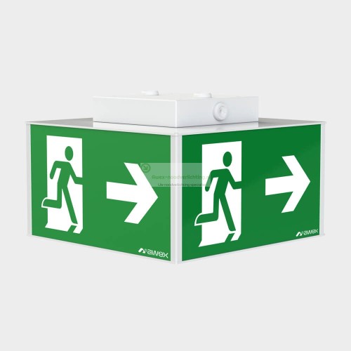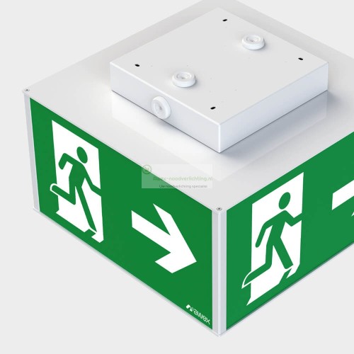 De AWEX Cube 2 is een professioneel vierzijdig LED vluchtwegarmatuur met een herkenningsafstand van 35 meter. Dankzij de zichtbaarheid aan alle zijden is dit armatuur ideaal voor open ruimtes, hoge plafonds, hallen en centrale locaties waar vluchtroutes vanuit meerdere richtingen zichtbaar moeten zijn.